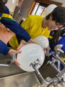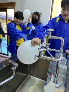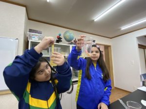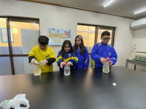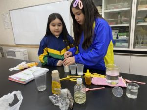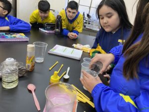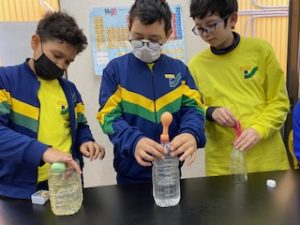 Laboratório – alunos realizaram a experiência do ar ocupando espaço, a experiência da eletrização, experiência das misturas homogêneas e Heterogêneas e a influência da temperatura nas soluções.
